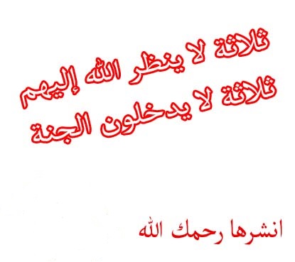 ثلاثة لا ينظر الله إليهم يوم القيامة العاق لوالديه والمرأة المترجلة المتشبهة بالرجال والديوث لفلي سمايل
