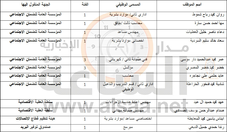 انتداب موظفين لغايات نقلهم على جدول تشكيلات الوظائف لعام 2020 أسماء