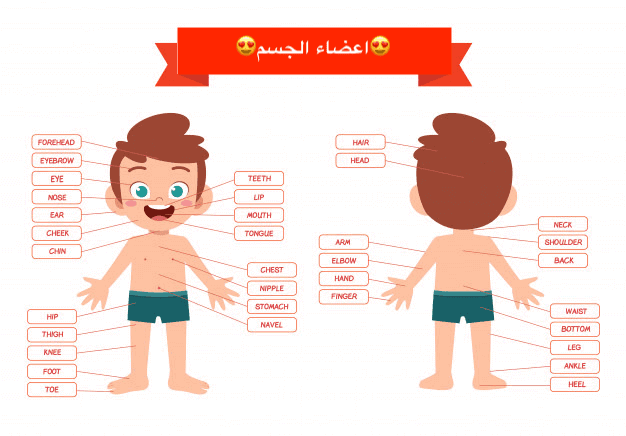 مفهوم اعضاء جسم الإنسان باللغة الانجليزية مكتوبة ومنطوقة. اعضاء جسم الانسان بالانجليزية. اجزاء جسم الانسان the parts of the human body.