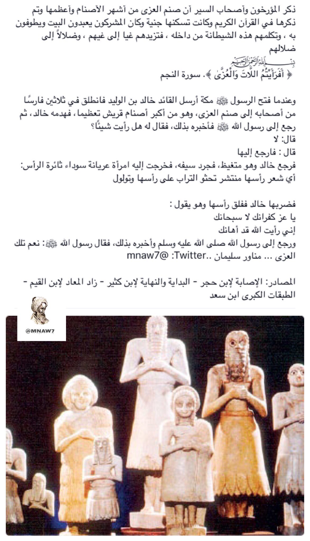 مناور سليمان On Twitter أ ف ر أ ي ت م الل ات و ال ع ز ى ذكر المؤرخون وأصحاب السير أن صنم العزى من أشهر الأصنام وأعظمها عند المشركين Https T Co D2dgjzxypk