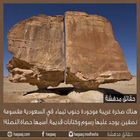هناك صخرة غريبة موجودة جنوب تيماء في السعودية مقسومة نصفين Aauahd