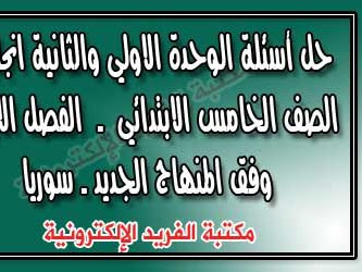 حل تمارين الوحدة الاولى والثانية انجليزي للصف الخامس الفصل الاول سوريا ـ المنهاج الجديد مكتبة الفريد الإلكترونية